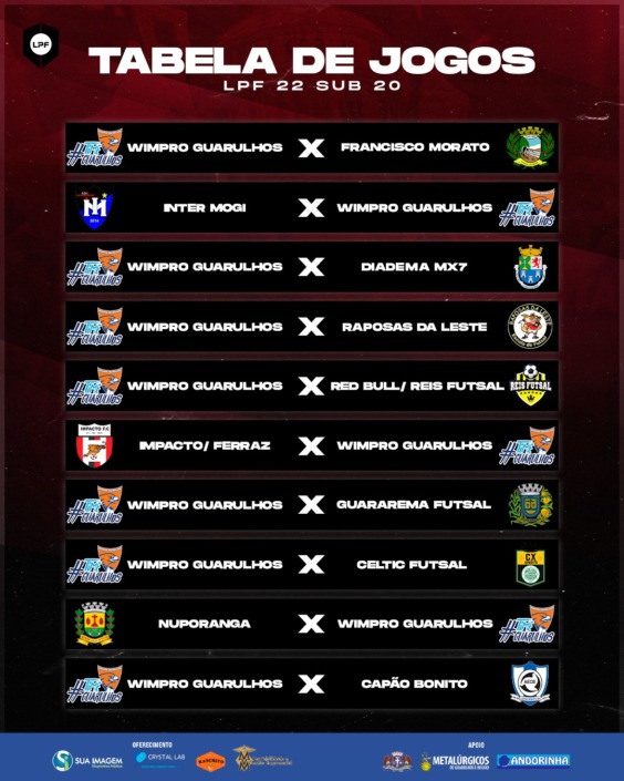 Tabela de jogos Categoria SUB20